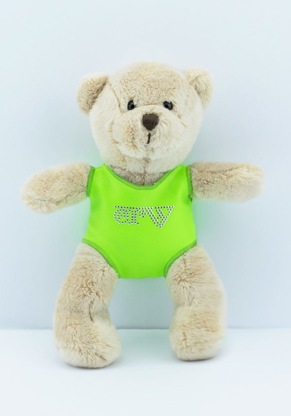 ERVY Teddybär mit Turnanzug – neongrün